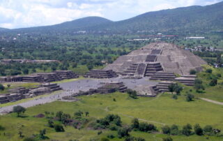 La ciudad de Teotihuacán, en México, fue un centro ceremonial que floreció entre el 200 a. C. y el 800 d. C., con edificios destacados como las Pirámides del Sol y de la Luna.